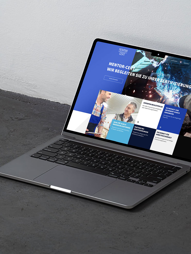 Ein kompletter Markenauftritt aus einem Guss – von der strategischen Positionierung über Logo und Corporate Design bis hin zur Website. Mentor-Cert präsentiert sich heute als kompetenter Partner, der komplexe Zertifizierungsprozesse verständlich macht und Unternehmen sicher durch das Normen-Dickicht führt.